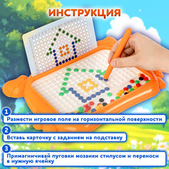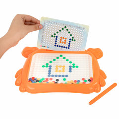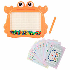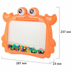 Детская развивающая магнитная игрушка "Краб" в виде мозаики с разноцветными пуговками станет для ребёнка источником неограниченного креатива и хорошего настроения.В набор входит игровое поле в виде краба, изготовленное из прочного ABS-пластика. Игровое поле накрыто прозрачным акриловым экраном. На игровом поле предусмотрено 180 ячеек для цветной мозаики. Под акриловым стеклом располагается цветная магнитная мозаика в количестве 101 штуки. В комплект также входит стилус из ABS-пластика с магнитным наконечником и 10 двусторонних карточек с заданиями.