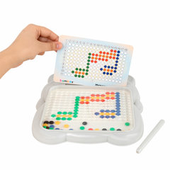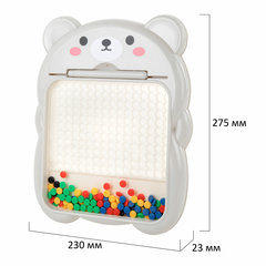 Детская развивающая магнитная игрушка "Медвежонок" в виде мозаики с разноцветными пуговками станет для ребёнка источником неограниченного креатива и хорошего настроения.В набор входит игровое поле в виде медвежонка, изготовленное из прочного ABS-пластика. Игровое поле накрыто прозрачным акриловым экраном. На игровом поле предусмотрено 180 ячеек для цветной мозаики. Под акриловым стеклом располагается цветная магнитная мозаика в количестве 101 штуки. В комплект также входит стилус из ABS-пластика с магнитным наконечником и 10 двусторонних карточек с заданиями.