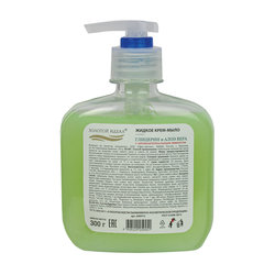 Жидкое мыло-крем ЗОЛОТОЙ ИДЕАЛ "Глицерин и алоэ вера" идеально подходит для использования в офисах, отелях, ресторанах и других общественных местах.Средство универсального применения с антибактериальным эффектом отлично очищает и смягчает кожу, обеспечивает уход и увлажнение, обладает приятным ароматом алоэ вера. Подходит для всех типов кожи и не содержит формальдегида. Легко очищает, ухаживает и увлажняет, равномерно распределяется по коже и легко смывается водой, даря удовольствие всей семье. Благодаря входящим в состав смягчающим компонентам и сбалансированному уровню рН сохраняет защитные функции кожи, не вызывая сухости и раздражения. Поставляется в флаконе с дозатором. Объем - 300 мл.