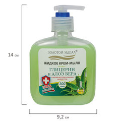 Мыло-крем жидкое 300 г ЗОЛОТОЙ ИДЕАЛ "Глицерин и алоэ вера",с антибактериальным эффектом, дозатор, 606412