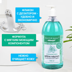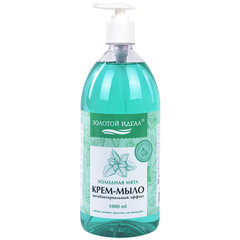 Мыло-крем жидкое с АНТИБАКТЕРИАЛЬНЫМ ЭФФЕКТОМ 1 л ЗОЛОТОЙ ИДЕАЛ "Холодная мята", дозатор, 608285