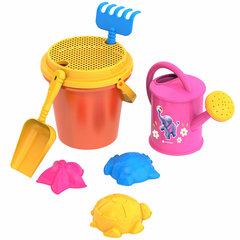 Набор для игр в песке: ведерко с ситом, лейка, совок, грабельки, 3 формочки "Морские", НОРДПЛАСТ, 431780
