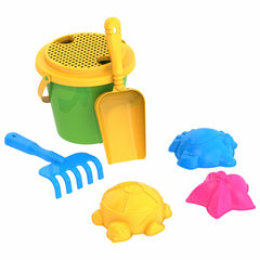 Преимущества набора: • Яркие, стойкие цвета. • Прочный безопасный пластик. • Четкая деталировка. • Удобные ручки – идеально для ребенка. Тип товара: набор для игр в песочнице, Размер: - см, Количество в наборе: 6 шт., Состав набора: 3 формочки, ведерко с ситом, грабельки, совок, Тематика: Море, Серия: Наборы для игр в песке, Упаковка: сетка. Код: 666438