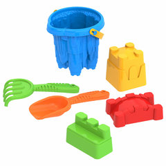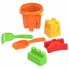 Без возможности выбора цвета. Тип товара: набор для игр в песочнице, Размер: - см, Количество в наборе: 6 шт., Состав набора: 3 формочки, ведро "Замок", грабельки, совок, Тематика: Крепость, Серия: Наборы для игр в песке, Упаковка: сетка. Код: 666444