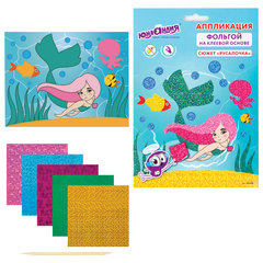 Набор для творчества "Аппликация из фольги", "Русалочка", самоклеящаяся основа 20х15 см, ЮНЛАНДИЯ, 662382