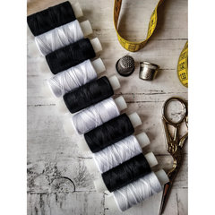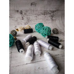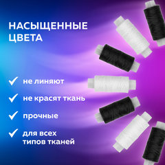 Набор швейных ниток, 10 штук (5 белых и 5 черных) по 150 м, прочные, 45 ЛЛ, ОСТРОВ СОКРОВИЩ, 662790