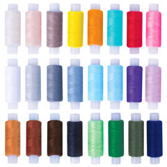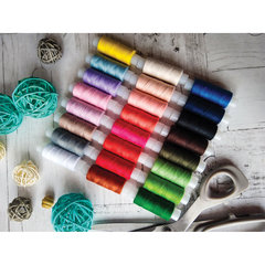 Цвета ниток в наборе могут незначительно отличаться от представленных на фото. Тип ниток: швейные, Серия: Швейные , Количество цветов: 24, Длина намотки: 150 м, Материал ниток: 40 ЛШ, 100% полиэфир, Разрывная нагрузка: 1.47 кгс, Линейная плотность: 42 текс, Цвет: ассорти. Код: 662788