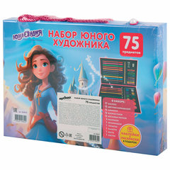 Набор ЮНОГО ХУДОЖНИКА "ПРИНЦЕССА" для рисования и творчества в кейсе ЮНЛАНДИЯ, 75 предметов, 665673