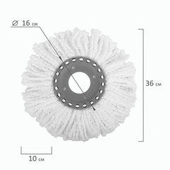 Тип насадки: круглая для набора для уборки, Материал: микрофибра, Количество в комплекте: 1 шт., Крепление насадки: резиновое кольцо, Длина: 36 см, Ширина: 36 см, Максимальный объем впитывания: 1500 мл, Длина ворса: 10 см, Цвет: белый, Вес: 50 г.