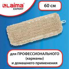 Насадка МОП плоская 60 см для швабры-рамки, карманы, нашивной хлопок, LAIMA EXPERT, 605305