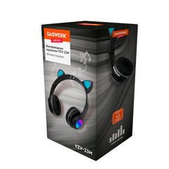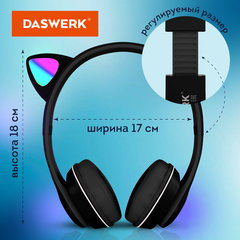 Наушники беспроводные игровые накладные, с ушками, светящиеся, черные DASWERK (ДАСВЕРК) VZV-23M, 513800