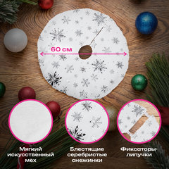 Новогодний коврик под елку белый c серебристыми снежинками, 60 см, полиэстер, ЗОЛОТАЯ СКАЗКА, 592158