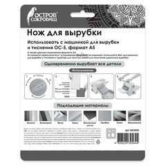 Ножи для вырубки ОСТРОВ СОКРОВИЩ - это пластины с мощными фигурными ножами, позволяющие легко и быстро создавать вырубки из множества различных материалов: картон, фоамиран, фетр, кожа, пробка и другие. Используются с машинкой для вырубки и тиснения ОС-5.Стальной нож в виде цельной пластины размером 15х14 см и толщиной 1,4 см позволяет одновременно вырубить 4 детали в форме овалов различных размеров. Мощный нож позволяет без труда работать с бумагой, картоном, фоамираном, фетром толщиной до 4 мм, тканью, мешковиной, магнитными листами, пробкой, кожей и другими материалами.