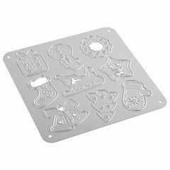 Ножи для вырубки и тиснения ОСТРОВ СОКРОВИЩ - это фигурные стальные ножи, предназначенные для использования с машинкой для вырубки и тиснения ОС-5. С их помощью можно создавать вырубки из различных материалов, а также эмбоссировать полученные изделия.В набор общим размером 100х100 мм входит 10 стальных ножей на новогоднюю тематику. Ножи многофункциональны: каждый из них позволяет создать вырубку и эффект тиснения. Материалы, подходящие для работы - бумага, картон, алюминиевая фольга для рукоделия, фоамиран и другие.