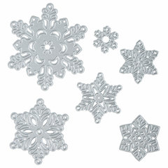 Ножи для вырубки и тиснения ОСТРОВ СОКРОВИЩ - это фигурные стальные ножи, предназначенные для использования с машинкой для вырубки и тиснения ОС-5. С их помощью можно создавать вырубки из различных материалов, а также эмбоссировать полученные изделия.В набор с общим размером 112х128 мм входит 6 стальных ножей в виде снежинок различных форм и размеров. Ножи многофункциональны: каждый из них позволяет создать вырубку и эффект тиснения. Материалы, подходящие для работы - бумага, картон, алюминиевая фольга для рукоделия, фоамиран и другие.