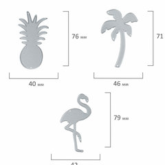 Ножи для вырубки и тиснения ОСТРОВ СОКРОВИЩ - это фигурные стальные ножи, предназначенные для использования с машинкой для вырубки и тиснения ОС-5. С их помощью можно создавать вырубки из различных материалов, а также эмбоссировать полученные изделия.В набор входит 3 стальных ножа, объединенных тропической тематикой, в форме фламинго, пальмы и ананаса, с максимальным размером 97х114 мм. Ножи многофункциональны: каждый из них позволяет создать вырубку и эффект тиснения. Материалы, подходящие для работы - бумага, картон, алюминиевая фольга для рукоделия, фоамиран и другие.