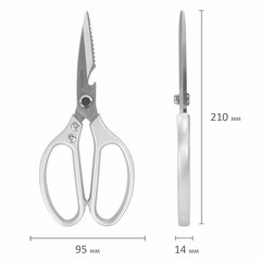Ножницы кухонные DASWERK (ДАСВЕРК), 210 мм, с открывашкой, зазубренные, металлические ручки, 608901