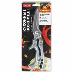 Ножницы-секатор кухонные DASWERK (ДАСВЕРК), 260 мм, фиксатор, зазубренные, металлические, 608902