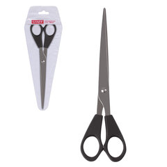 Это товар эконом-сегмента, поэтому он отличается привлекательной ценой. Товар обладает базовым набором характеристик и простой упаковкой, при этом полностью соответствует основным требованиям потребителей. Длина: 180 мм, Тип ножниц: для правши, Заточка лезвий: двусторонняя, Симметричные ручки: да, Товар относится к сегменту ЭКОНОМ: да, Форма лезвий: остроконечные, Длина лезвий: 125 мм, Серия: Basic, Материал лезвия: нержавеющая сталь, Материал ручек: пластик, Цвет ручек: черный, Упаковка: ПВХ чехол с европодвесом. Код: 236939