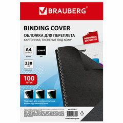 Обложки для переплета BRAUBERG придадут документам эстетичный внешний вид и защитят от повреждений. Предназначены для переплета документов брошюровщиком с помощью пластиковых и металлических пружин. Актуальны для создания деловых брошюр.Выполнены из прочного, износостойкого картона черного цвета плотностью 230 г/м2. Тиснение под кожу. Подходят для документов формата А4. 100 штук в комплекте.