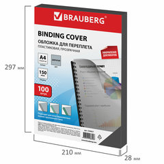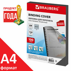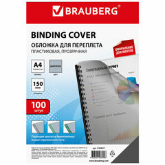 Обложки пластиковые для переплета, А4, КОМПЛЕКТ 100 шт., 150 мкм, прозрачно-дымчатые, BRAUBERG, 530827