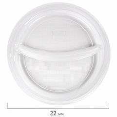 Одноразовые 2-х секционные тарелки LAIMA подходят для офисных столовых, предприятий общественного питания, а также для организаций, специализирующихся на торговле одноразовой посудой.Предназначены для холодных и горячих (до +75°C) блюд. Подходят для разогрева еды в микроволновой печи. Изготовлены из высококачественного полипропилена белого цвета. Удобные 2-х секционные тарелки диаметром 220 мм поставляются в комплекте 100 штук.
