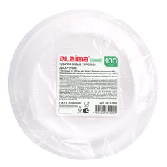 Одноразовые тарелки десертные, КОМПЛЕКТ 100 шт., пластик, d=165 мм, СТАНДАРТ, белые, ПП, холодное/горячее, LAIMA, 607388