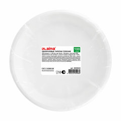 Одноразовые тарелки плоские, КОМПЛЕКТ 100 шт., пластик, d=220 мм, БЮДЖЕТ, белые, ПС, холодное/горячее, LAIMA, 600943