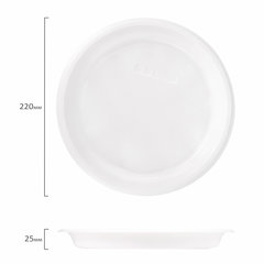 Внимание! Приборы не подходят для разогрева в СВЧ! Тип тарелки: плоская, Количество секций: 1 шт., Назначение: для холодного и горячего, Диаметр: 220 мм, Материал: полистирол, Товар относится к сегменту ЭКОНОМ: да, Соответствует требованиям ГОСТа: ГОСТ Р 50962-96, Серия: Бюджет, Количество в упаковке: 100 шт., Цвет: белый. Код: 600943