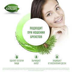 Клинически доказано: улучшает состояние десен до 84%. Ополаскиватель Лесной бальзам для укрепления десен с экстрактом можжевеловых ягод и корой дуба также подходит для гигиены полости рта при ношении брекетов или съемных зубных протезов. Он снижает скорость размножения вредной, в том числе кариесогенной, микрофлоры и защищает от развития локального воспаления.