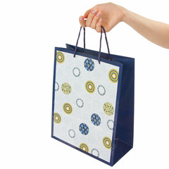 Изготовлен из ламинированной мелованной бумаги с веревочными ручками из полипропилена. Размер – 26x13x32 см. Пакет с принтом в виде кругов и колец выполнен в серых, синих и бежевых тонах. Формат: вертикальный, Вид пакета: штучный, Дизайн: Кольца и круги, Материал: мелованная бумага, Количество в комплекте: 1 шт., С рисунком: да, Цвет: серо-синий, Размер пакета: L (26х13х32) см, Формат размера пакета: L. Код: 606602