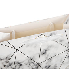 Изготовлен из ламинированного мелованного картона с ленточным ручками из полиэстера. Размер – 26x13x33 см. Пакет выполнен в цвете белого мрамора с изображением абстракции. С лицевой стороны пакета некоторые детали покрыты тиснением золотистой фольгой. Формат: вертикальный, Вид пакета: штучный, Дизайн: Абстракция, Материал: мелованный картон, Количество в комплекте: 1 шт., С рисунком: да, Цвет: белый, Размер пакета: L (26х13х33) см, Формат размера пакета: L. Код: 608251