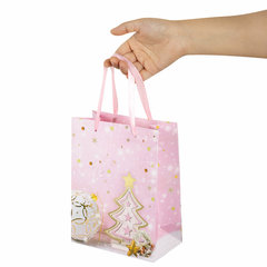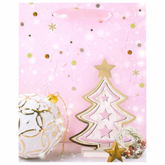 Изготовлен из ламинированного мелованного картона с ленточными ручками из полиэстера. Размер – 18x10x23 см. Пакет выполнен в розовом и золотистом цветах с изображением праздничных новогодних атрибутов. С лицевой стороны пакета некоторые детали покрыты тиснением золотистой фольгой. Вид пакета: вертикальный, Количество в комплекте: 1 шт., Дизайн: Lilac Story, Материал: мелованный картон, Эффект: фольга, С рисунком: да, Цвет: светло-розовый, Тип: новогодний, Размер пакета: M (18x10x23) см. Код: 608233