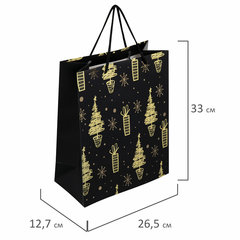Пакет подарочный (1 штука) новогодний 26x13x32 см, ЗОЛОТАЯ СКАЗКА "Black&Gold", фольга, чёрный, 608236