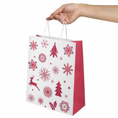 Набор подарочных пакетов изготовлен из крафт-бумаги с бумажными ручками. Размер – 26x13x32 см. Пакет выполнен с изображением новогодних атрибутов. Вид пакета: вертикальный, Количество в комплекте: 10 шт., Дизайн: Winter Kraft, Материал: крафт, Эффект: отсутствует, С рисунком: да, Цвет: красный/белый, Тип: новогодний, Размер пакета: L (26х13х32) см. Код: 591960
