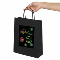 В комплект подарочных пакетов из крафт-бумаги также входят бумажные ручки, скретч-слой с одной стороны пакета и два бамбуковых стилуса. Размер – 32x13x26 см. Пакеты однотонного цвета. Формат: вертикальный, Вид пакета: набор, Дизайн: Black Kraft, Материал: крафт-бумага, Количество в комплекте: 7 шт., С рисунком: да, Цвет: черный, Размер пакета: L (26х13х32) см, Формат размера пакета: L. Код: 591970
