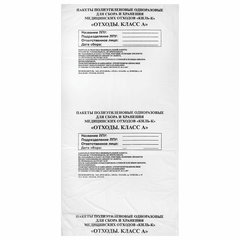 Пакеты для медицинских отходов КОМПЛЕКТ 100 шт., класс А (белые) 30 л, 50х60 см, 16 мкм, ПТП "Киль"