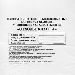 Пакеты для сбора и утилизации медицинских отходов ПТП "Киль" – расходный материал первой необходимости в любом медицинском учреждении.На пакете предусмотрено информационное окно для внесения данных: класс отходов, название лечебно-профилактического учреждения (ЛПУ), дата сбора, ФИО ответственного лица и код подразделения.