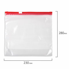 Размер: 230х280 мм, Толщина материала: 45 мкм, Тип: пакет с замком, Количество в упаковке: 10 шт., Материал: полиэтилен высокого давления (ПВД), Цвет: прозрачный.