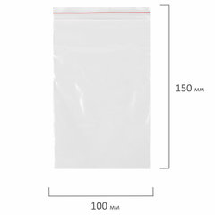 Размер: 100х150 мм, Толщина материала: 32 мкм, Тип: пакет с замком, Количество в упаковке: 100 шт., Материал: полиэтилен высокого давления (ПВД), Цвет: прозрачный.