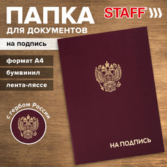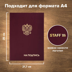 Папка адресная бумвинил "НА ПОДПИСЬ" с гербом России, А4, бордовая, индивидуальная упаковка, STAFF "Basic", 129626