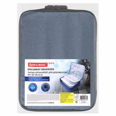Папка-органайзер для документов с кодовым замком BRAUBERG DOCS предназначена для хранения и транспортировки важных документов и ценных вещей. Незаменима для хранения семейных документов, документов для учебы, работы, деловых поездок.Органайзер изготовлен из качественной оксфордской водонепроницаемой ткани. Содержит 1 основное отделение без карманов и 2 перегородки, на одной из которых есть 1 сетчатый карман с одной стороны и 2 кармана из полиэстера – с другой стороны. На второй перегородке размещен 1 сетчатый карман на молнии с одной стороны и 12 карманов из полиэстера для кредитных карт/визиток, а также 4 сетчатых кармана для предметов небольшого размера – с другой стороны.