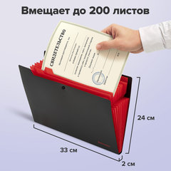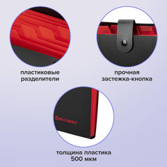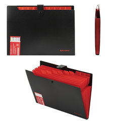 Папка-органайзер на кнопке 12 отделений, BRAUBERG "Extra", А4, черная с красным, 271934