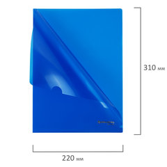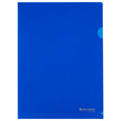 Папка-уголок жесткая А4, синяя, 0,15 мм, BRAUBERG EXTRA, 271702