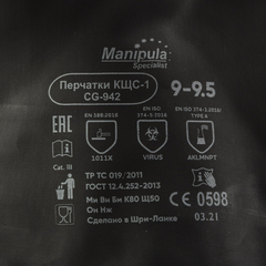 Перчатки защитные латекс,черный Manipula КЩС-1 (L-U-03/CG-942) р.9