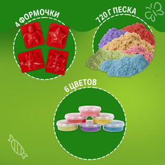 Песок для лепки кинетический BRAUBERG KIDS, 6 цветов, 720 г, 4 формочки, 665090