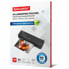 Пленки-заготовки для ламинирования А4, КОМПЛЕКТ 100 шт., 60 мкм, BRAUBERG, 531452
