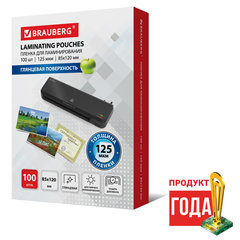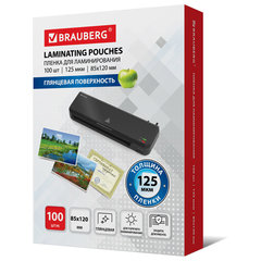 Пленки-заготовки для ламинирования МАЛОГО ФОРМАТА (85х120 мм), КОМПЛЕКТ 100 штук, 125 мкм, BRAUBERG, 530901