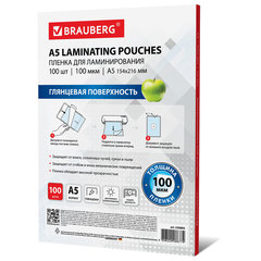 Пленки-заготовки для ламинирования МАЛОГО ФОРМАТА, А5, КОМПЛЕКТ 100 шт., 100 мкм, BRAUBERG, 530805