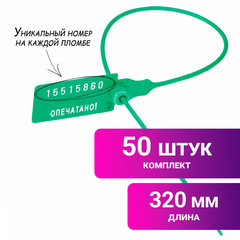 Пломбы пластиковые номерные УНИВЕРСАЛ, самофиксирующиеся, длина рабочей части 320 мм, ЗЕЛЕНЫЕ, КОМПЛЕКТ 50 шт., 602473